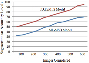 Multiple sclerosis is a disease of the neurological system that affects the senses, vision, and mechanical function in persons who have MS. MRI has gotten a lot of attention from doctors for diagnosing MS [28], but there are other ways as well. When it comes to quickly diagnosing MS lesions, doctors rely on MRI modalities because they give them critical information about the brain's structure and function [29]. The proposed model is implemented in python and executed in GOOGLE COLAB. The dataset is available in the link http://biogps.org/dataset/tag/multiple%20sclerosis/. The proposed Priority based Apposite Feature Extraction Model with Image Segmentation (PAFEM-IS) Model is compared with the existing Machine Learning based Multiple Sclerosis Detection (ML-MSD) model. The proposed model is contrasted with the traditional models by considering parameters like Image Segmentation Time Levels, Segmentation Accuracy Levels, Pixel Extraction Accuracy levels, Feature Extraction Accuracy Levels, Features Considered, Detection Accuracy and Error Rate.