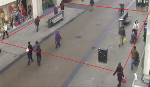 In the Oxford Town Center dataset, the width and a certain length of the street is chosen as the counting area. Determined counting area is given in Figure 6.
