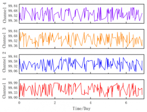 Figure 6 shows the historical data of the three feature parameters including the odd-even harmonic ratio, fundamental frequency proportion and vibration entropy, of each channel. The historical data of each feature parameter has a certain degree of fluctuation and a certain degree of time sequence. The eigenvalue of each channel is related to the ready-made operation condition of reactor, environmental factors and other factors.