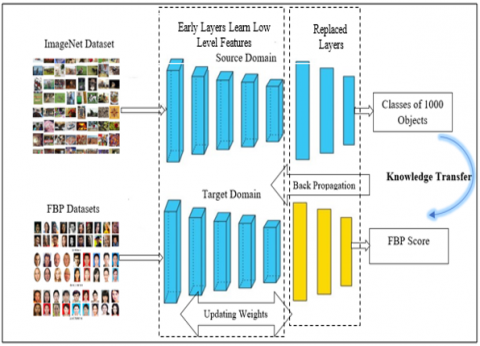 It is a technique for transferring knowledge from one or more source tasks to a target task. Transfer learning is the most recent benchmark in the deep learning approach, it is also thought to be able to improve current structures so that they are suitable for new tasks. Furthermore, transfer learning is utilized to overcome over-fitting when the number of training samples is restricted [23]. Moreover, it helps to save training time. The proposed model transfers the knowledge of the networks pre-trained on the ImageNet dataset, which is a massive visual database designed for use in visual object identification software. It is recognized as a significant achievement in machine learning model evaluation. ImageNet has manually annotated over 14 million images and 1000 classes to identify items in at least one million images [24]. The proposed model fine-tunes these networks to be adapted to the facial image beauty estimation task.