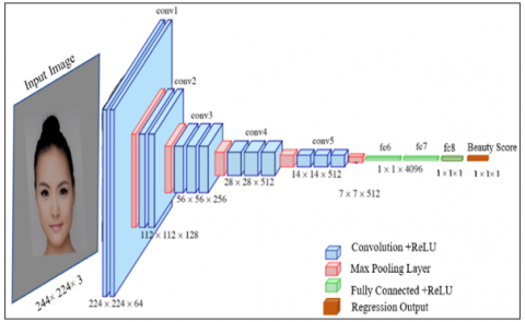 Machine-based facial image beauty assessment like a human prediction, is a new and challenging research field. CNN has made considerable progress in computer vision in recent years due to its incredible capacity to learn discriminative features. Generally, CNNs consist of several convolutional layers, pooling layers, nonlinear activation functions, and ultimately one or more fully connected layers.