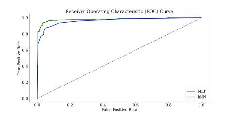 In this study, Multilayer Perceptron and K-Nearest Neighbors algorithms were used for classification and the performances of the algorithms were compared. As a result, Multilayer Perceptron is better than K-Nearest Neighbors algorithm in all metrics. In addition, the proposed MLP and k-NN models were compared with previous studies in the literature. The proposed MLP model achieved an accuracy of 95.673%, F1-Score of 95.706% and AUC Score of 99.006%. These results are the best when compared with previous studies.