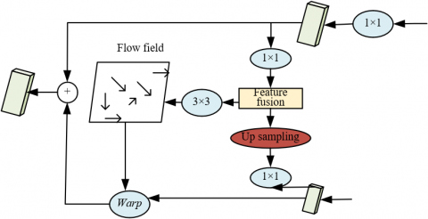 The edge enhancement module for geological remote sensing images is built under the application scenario of geological disaster monitoring and early warning systems based on computer vision and deep learning research and development. Traditional bilinear interpolation upsampling methods can only deal with fixed and pre-declared feature map pixel position misalignments. However, the edge enhancement module improved by the flow alignment module can dynamically adjust the positional relationship of feature map pixels, thereby better resolving feature map pixel position misalignment issues. Since geological remote sensing images often contain complex terrain, geomorphology, and geological disaster features, the flow-aligned, edge-enhanced module can learn rich semantic flow information between feature maps of different resolutions, giving the model a stronger adaptability and better performance in complex geological remote sensing image scenarios. In semantic segmentation tasks, the recovery of smaller spatial resolution and semantically stronger feature maps is crucial. The flow-aligned, edge-enhanced module can effectively retain the information of apparent and semantic features by upsampling and skip-connection methods, thereby improving the recognition accuracy of geological remote sensing image boundaries. The dynamic positional relationship of feature map pixels is considered further in the upsampling process to enhance the model's discriminative capabilities when processing geological remote sensing images. The architecture of the flow alignment module is depicted in Figure 2.