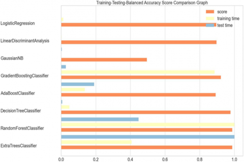 Figure 4. Comparison of different classifiers according to accuracy, training, and testing time