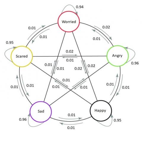 In Figure 11, the states are the emotional classes and the transitions represent the value. From the figures, it is understood that the majority of the emotions are identified correctly.
