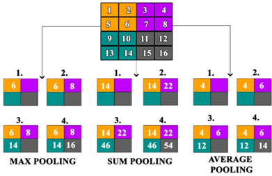 Every input element is placed through a threshold operation, and any element whose range is less than 0 can be set to 0 is considered to have that value. The four-dimensional extent of the convoluted feature is subsequently decreased by the pooling layer. It quickens calculation while limiting over-fitting. The different pooling operations are depicted in Figure 7.