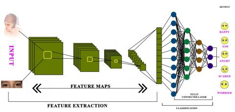 Since EEG signals may accurately describe changes in brain state; emotion detection using EEG signals is a popular research technique. For emotion identification, EEG data are supplemented with a facial expression signal. To create multi-modular emotion recognition, the EEG signals, and facial impression data have been merged using the TTCNN network and then the emotions are classified into five different emotions such as happy, sad, angry, scared, and worried. Recognizing emotions in many modes BDAE is utilized for model combination to investigate the stability of EEG and facial impression information expressing emotions across time. The integration of EEG and facial impression information enhanced the emotion detection model's accuracy. After training, the third BDAE layer (five-layer) is utilized to extract features, which are then sent to the TTCNN for administered picking-up preparation to obtain the feeling characterization model. As a result, the prototype will be better ability to differentiate between things of emotions in the two signals that the profound neural organization has retrieved. The pre-processed inputs are fed to the proposed TTCNN model for emotion recognition is shown in Figure 3.