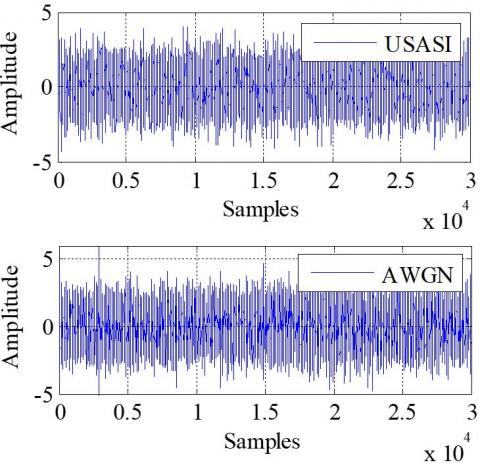 The simulation involves comparing the performance of the Proposed algorithm with three other algorithms: the Basic-NLMS (fixed-and-non-proportionate step-size), the IP-NLMS [19] (fixed-and-proportionate step-size) and the VSS-NLMS [21] (variable-and-nonproportionate step-size). These algorithms are implemented and tested in the MATlab environment. Two types of input signals are used for testing the performances of these algorithms: USASI-noise (USA Standards Institute) and Additive White Gaussian Noise (AWGN). The statistical characteristics of USASI-noise are: a spectrum close to the average spectrum of the speech signal, a spectral range of $32 d B$ and a power of $\sigma_x^2=0.33$. These signals represent the background noise that the AEC system needs to cancel it (see Figure 5). We note that the sparse impulse responses are used to model the characteristics of real rooms. These responses are crucial for simulating the acoustic environment accurately.