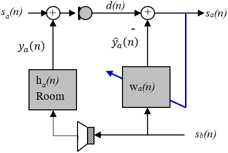 $e(n)=s_a(n)+s_b(n) *\left[h_a(n) * w_a(n)\right]$ (7)