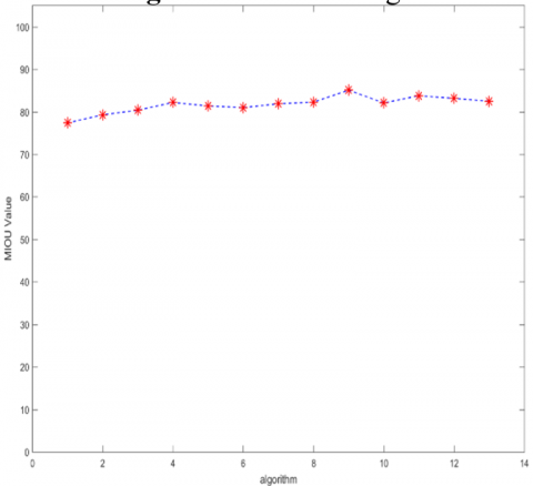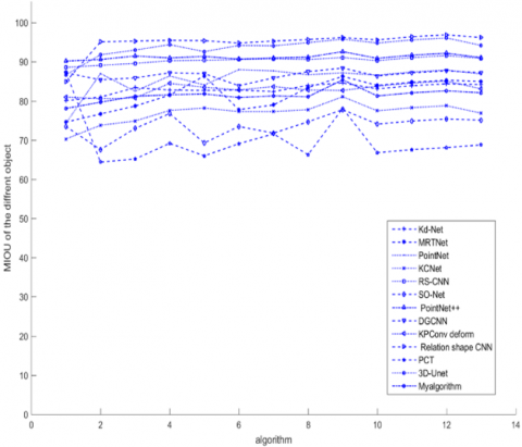 Figure 7. Relationship curves between objects, algorithms and MIOU value on Mortise_and_Tenon_DB