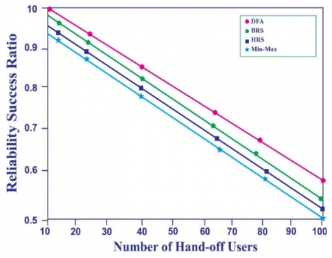 Figure 6. Reliability success rate vs number of hand-off users for relay selection