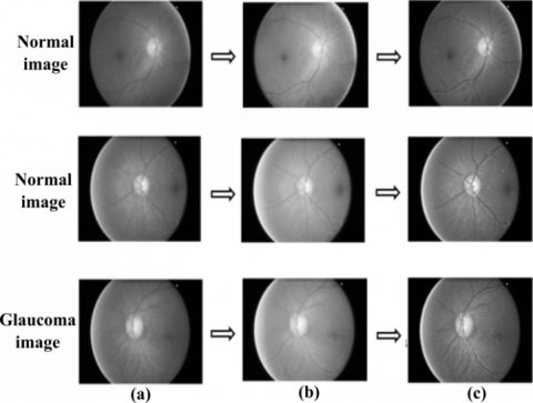 In human life, vision plays a critical role in coordinating daily activities. There are harmful diseases that can affect vision more than the adverse effects caused by accidents. The primary cause [1] of vision disability is glaucoma development. There are a variety of approaches to detecting glaucoma in the early stages [2], most of which are based on medical examination through the fundus (retinal) image structures [3]. Manually inspecting retinal images, on the other hand, is a tedious task. In this case, CAD [4] has proven to be a valuable tool for ophthalmologists in interpreting the eye fundus images for a rapid and accurate glaucoma screening. The major phases of CAD are image improvement, feature extraction, and classification. Several existing CAD approaches exhibit potential in screening glaucoma from various medical imaging modalities such as fundus photography. However, they come with certain limitations. The current approaches use large retinal image datasets to demonstrate their effectiveness, but acquiring these datasets is challenging and time-consuming. Another significant limitation is class imbalance, where the number of healthy samples greatly exceeds or falls short of the number of glaucomatous samples. This can bias the model toward the majority class and diminish its ability to accurately classify the minority class. Present convolutional-based glaucoma screening approaches are often criticized for their lack of interpretability since originally they are trained on non-medical images. In medical contexts, understanding the rationale behind a model's classification decisions is essential due to the significant consequences of these decisions. Lack of model generalization is another issue in the retinal image pattern recognization. Retinal images frequently lack quality and standardization due to factors like low contrast, uneven illumination, and imaging conditions. While current CAD approaches focus primarily on identifying retinal image patterns, there's a need to address image enhancement. Improving visualization of retinal structures and abnormalities can facilitate clinicians in detecting subtle disease signs. Techniques that enhance features like blood vessels, the optic disc (OD), and the macula can aid in early glaucoma detection and accurate diagnosis.