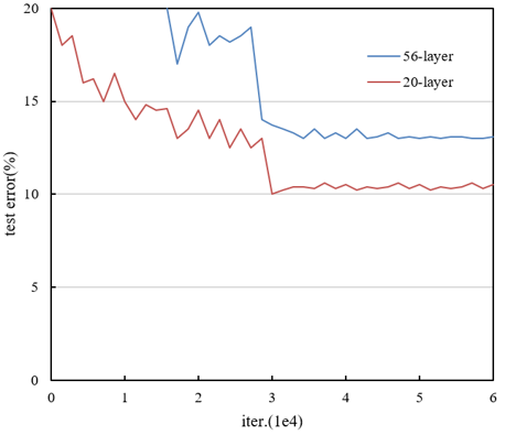 From the data in Figure 6, it can be observed that the error rates of real-time monitoring models for financial market time-series curves at different network depths change during both training and testing processes. For the training iterations, the 6-layer network model starts with an error rate of 20 at iteration 0, gradually decreasing and fluctuating to 9.5, indicating that the model is progressively converging and improving during training. Notably, after the 5th iteration, the error rate fluctuates less and stabilizes at a lower value in the later iterations (such as 7.5, 7, 6, etc.). In contrast, the 20-layer network starts with an error rate of 20 at the beginning of training, and although the error rate decreases gradually as training progresses, the overall decline is relatively small. A noticeable decrease occurs around the 20th iteration, eventually stabilizing between 3.5 and 1.8, showing a more gradual convergence trend. For the testing iterations, the 6-layer network starts with a test error rate of 20, gradually decreasing and stabilizing around 13. Although some fluctuations occur (such as 13.7, 14, etc.), it maintains a relatively high level of accuracy. The 20-layer network's test error rate decreases gradually from 20 to around 10.2, showing a more stable performance, and after the 20th iteration, the error rate stabilizes around 10%. From the analysis of the experimental data above, it can be concluded that the number of layers in the model has a significant impact on the error rate of real-time monitoring for financial market time-series curve patterns. The 6-layer model converges earlier during training and maintains a lower error rate, but its stability is relatively poor, especially in the testing phase, where the error rate fluctuates significantly. This suggests that it may lack sufficient modeling capability for the complexity of market dynamics. On the other hand, the 20-layer model shows slower convergence during training but eventually achieves more stable test performance, with the error rate stabilizing around 10%. This indicates that a deeper network (20 layers), although requiring more iterations to converge during training, has stronger expressive power when handling complex market dynamics and can stably make predictions and monitor market trends.