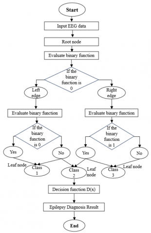 DAGSVM Classifier- DAGSVM is a machine-learning classifier for epilepsy diagnosis. It uses directed acyclic networks, which are ideal for making complex relations in EEG patterns. The process for detecting epileptic seizures described in this paper assembles binary classifiers in a directed acyclic graph and employs layered multiclass SVM and fuzzy-rule-based sub-band features. This method increases classification processing efficiency and high accuracy [31].