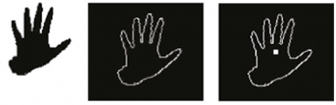 • This gesture identification pipeline segments the hand region of interest using a mask image that separates the fingers and normalizes the segmented finger images.