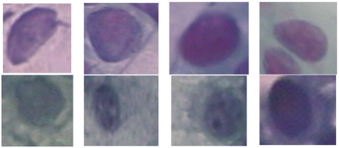Figure 6. Pap smear images: Normal (top row) and abnormal (bottom row)
