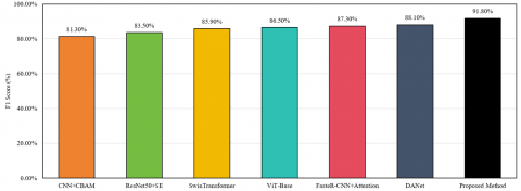 Six state-of-the-art (SOTA) methods related to fine-grained behavior recognition and classroom behavior recognition in the image processing field were selected for comparison, including Convolutional Neural Network (CNN) + Convolutional Block Attention Module (CBAM), Residual Network-50 (ResNet50) + Squeeze-and-Excitation (SE), Shifted Window Transformer (Swin Transformer), Vision Transformer-Base (ViT-Base), Faster Region-based Convolutional Neural Network (Faster R-CNN) with Attention, and Dual Attention Network (DANet). All methods were trained and tested on the same datasets and experimental environment to ensure fair comparison. The experimental results are shown in Table 1.