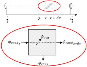 Figure 3. Schema of the thermal balance on an infinitesimal part dx of the wire