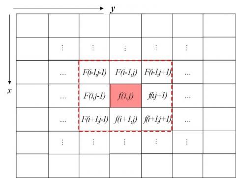 (3) According to Figure 5, the gradients px and py at pixel (i, j) can be respectively expressed as: