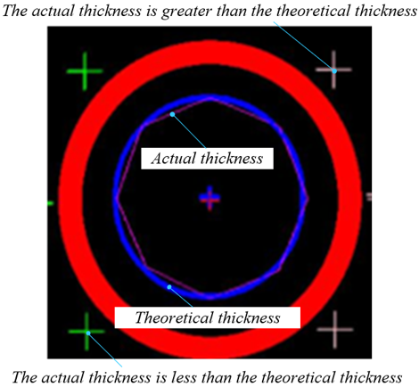The roundness of the inscribed circle of the PVC end-face can be calculated in a similar manner.