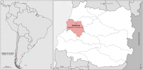 The city of Valdivia is a medium-sized Chilean city, with a population of 166,080 according to the last Census in 2017. It is located at 39° 48' S, 73° 14' W, specifically within the Valdivia River hydrographic basin, at the intersection of the Calle Calle, Valdivia, Cau Cau and Cruces rivers (Figure 1). The urban forms associated to the use of riverbanks throughout the history of Valdivia and the natural disasters suffered by the city have defined the river-city relationship. This relationship with water has molded the identity of Valdivia, marked by an intense relation of use among inhabitants, principally associated with navigability which drove industrial and commercial development in the city. The riverine landscapes of Valdivia have hosted settlements since the pre-Hispanic period. Settlements have been built, destroyed and rebuild in this area following invasions, fires and earthquakes.