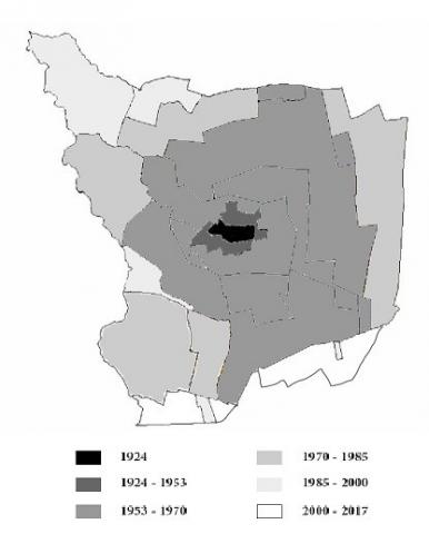 Figure 6. Urban growth in Irbid City during the period 1924-2017 [11]