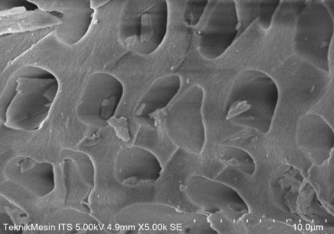 The ABCS produced has met the Indonesian National Standard SNI 06-3730-1995 for moisture, ash, and the content of the amount of bound carbon in the biochar. Scanning electronic microscopy (SEM) analysis was conducted to see the microstructure originating of ABCS. Because adsorption is the process of entering molecules into the pores, the carbon adsorption process depends on the physical characteristics of the activated carbon and the size of the adsorbate molecule [14].
