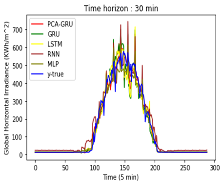 In this work, GRU is combined with PCA based on Grid-search optimization, as a new model of solar irradiation forecasting with multivariable data. GRU-PCA model tested in different time horizon and compared with different DL methods.