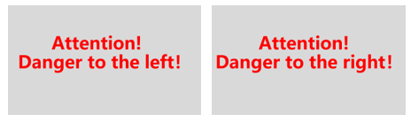 Our experiments verify whether the change of audio signal (visual signal) affects the attention distribution, reaction speed, cognitive load, and information recognition rate of the subjects, when the visual signal (audio signal) remains unchanged. Among them, the reaction speed and cognitive load were measured by EDA, PPG, and EEG. Hence, the experiments involve two independent variables, namely, visual signals in the form of text or image, and audio signals (meaningful voice and the beep sound), as well as three dependent variables, including the recognition rate of the warning message, the driver’s attention distribution, and the statistical values of EDA, PPG, and EEG. The signals of text and image mode are shown in Figures 2 and 3, respectively.