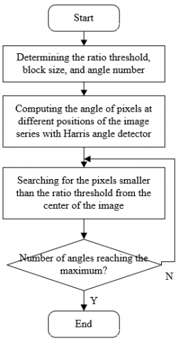 During the image series matching based on multiple feature points, the most effective way to overcome the limitations of image quality and feature extractors is to screen multiple feature points to be matched. Thus, this paper screens the corners detected by Harris corner detector, using the neighborhood non-maximum suppression (NMS) and global suppression. The goal is to ensure the uniform distribution of angles. The specific flow is shown in Figure 2.