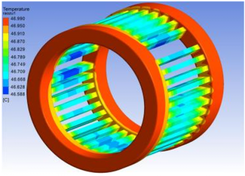 The temperature of the generator is mainly related to the internal losses and the thermal conductivity of the relevant materials. The PMSG has a fully enclosed surface for natural wind cooling. The heat of the generator is primarily dissipated in two ways: conveying the winding heat to the air via the stator and casing, and releasing the internal heat from the air gap to the rotor core.