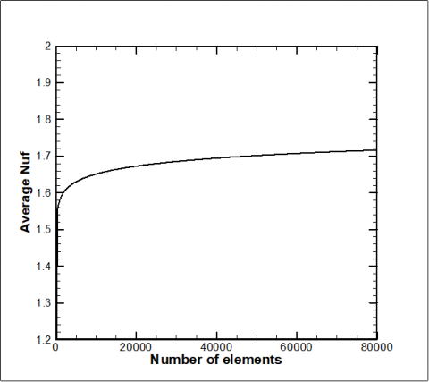 Figure 2. Mesh Independence study for average Nusselt Number for the fluid phase
