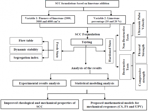 SCC, experimental design method, limestone fillers, modeling, mechanical response, non-destructive testing (NDT)