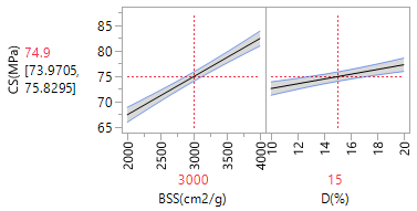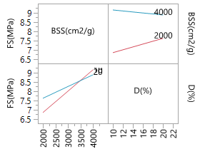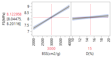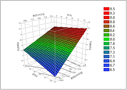 $\begin{aligned} \mathrm{FS}(\mathrm{MPa})=8.12 &+0.885 \frac{\mathrm{BSS}-3000}{1000} +0.125 \frac{\mathrm{D}-15}{5} -0.258 \frac{\mathrm{BSS}-3000}{1000} \cdot \frac{\mathrm{D}-15}{5} \end{aligned}$ (2)