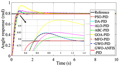 The GWO-ANFIS-PID controller has a tolerable overshoot contrasted to the GWO-PID and rapidly time response, and a very small distance error too, which makes it supported for this type of trajectory.