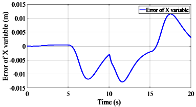 Figure 20. Error corresponding to (a) x, (b) y, (c) the theta angle, (d) the trajectory tracking