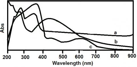Figure 1. UV-Vis behaviour of a) MnO2b) Cu c) Cu doped MnO2Nanoparticles