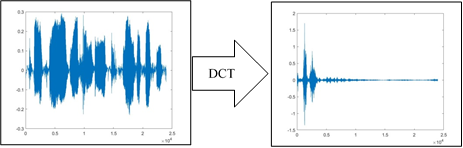 DCT, presented first in 1974, has gained a lot of traction in recent years. It is widely used due to its optimal performance, DCT is implemented especially in voice compression, utilized in the image analysis, and signal processing due to its good performance. DCT converts an input signal from the time domain to the frequency domain, and its 1D version is useful for examining 1D signals such as voice signals. DCT is consisting of (AC) and (DC) coefficients, in which the (DC) holds the average signal value and is coefficient C (0), whereas the rest coefficients are referred to as the AC coefficients [7].