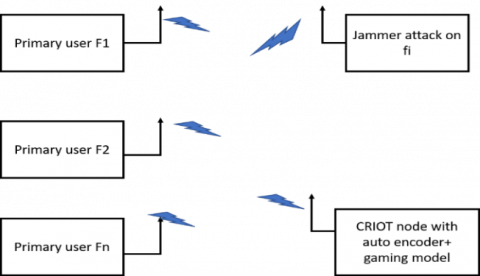 The system model for the jamming attack mitigation is given in Figure 1. The system model consists of n primary user and one CRIoT node, and one jamming node. The CRIoT node is applying an auto encoder for the detection of the jamming attack. This detection result is used on the gaming model for the mitigation of the jamming attack.