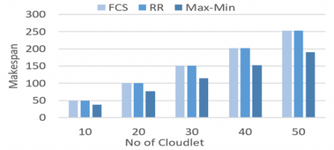 From the results, we found that Max-Min outperformed FCFS and RR in terms of the makespan metric in both policies as shown in Figure 4 and Figure 6. Moreover Max-Min achieved a better average waiting time compared to FCFS and RR in terms of Space-Shared policy as shown in Table 7. On the other hand, RR and FCFS performed similar to Max-Min in terms of the total cost in both policies, as shown in Figure 5 and Figure 7. Overall, the performance measurement for the three algorithms has increased when raising up the cloudlet’s number. Finally, the simulation revealed that the Max-Min has the best performance in terms of makespan and average waiting time in both policies.