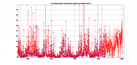 Figure 3. Results of daily rainfall prediction from actual data using two hidden layers