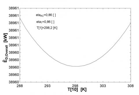 Figure 3. Impact of compressor inlet temperature on compressor Exergy destruction