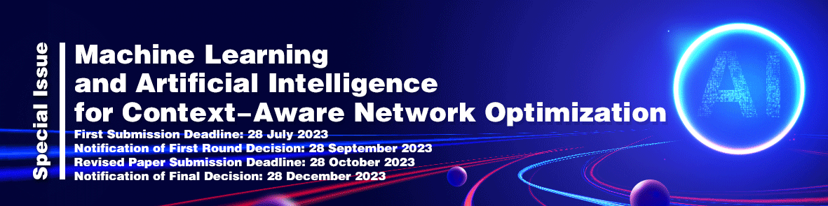 Machine learning and artificial intelligence have become increasingly important in the field of context-aware network optimization. This special issue focuses on the utilization of these techniques in the area of network optimization and their potential applications to improve network performance. We invite researchers to submit their original research results, reviews, perspectives and commentaries on the topics related to machine learning and artificial intelligence for context-aware network optimization. Topics of interest include, but are not limited to: