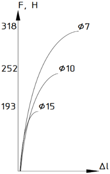 A series of experiments made it possible to determine the compressive strength of hazelnut shells of various initial sizes. Figure 1 shows a diagram in the F-Δl coordinates. It shows that, regardless of the initial size, the shell behaved as a brittle material.