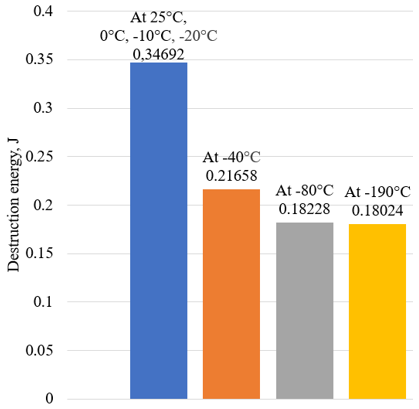 To determine the value of the transition to the brittle temperature range, we used the pendulum impact tester [41-43], because this method is extremely effective in stimulating brittle fracture [44, 45].