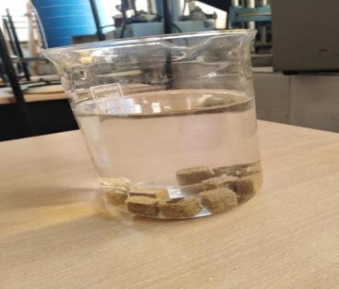 After the dissolution of the recycling EPS in gasoline, the obtained smooth paste was mixed with the reinforcement under 30°C. Under this temperature, the glue becomes more liquid which makes it possible to achieve a good distribution of fibres in the matrix.
