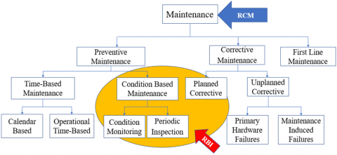 According to Tsarouhas [7], growing regulatory burdens, evolving technology paradigms, rising demands, and seemingly unending and pressing reorganisations characterise today's environment. It is ideal for constructing a mission concept and statement to assist maintenance employees in doing the same, much as every big organisation has done to help maintain a consistent approach despite many distractions. Maintenance benefits the system’s owners, users, and society. Owners are often happy if their system produces a sufficient and ongoing financial return on their capital investment. Users expect each asset to continue performing at a level that they, at the very least, find to be adequate. Maintenance technology aims to identify and implement low-cost strategies for preventing or reversing performance degradation for the assets that investors expect. Predictive and preventative measures, failure-finding, run-to-failure, and adjustments to the physical asset's design or operation are all examples of failure-management strategies. Each category has several possibilities, some far more efficient than others. The maintenance team must know these possibilities and choose the most suitable for their situation. Making the right decision should increase the performance of the asset and cut expenses all around. Making the wrong decision might result in brand-new issues while escalating ones already present. Consequently, the appropriate mission statement should emphasise the need to maximise. The results of a reliability-cantered maintenance analysis may affect current preventive maintenance procedures, require condition monitoring, inspections, and functional testing, or result in the inclusion or removal of such methods when looking at the system via risk-based inspection (RBI). The maintenance structure is depicted in Figure 1, which the maintenance team can employ for successful operations.