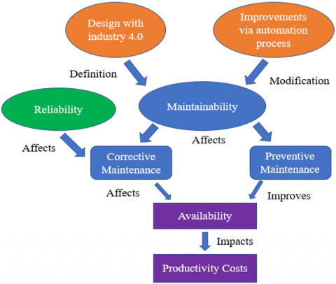 Figure 2. A structural system for improving availability via maintainability and reliability for manufacturing industries