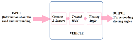 The trained DNN has trained on similar images of different roads with labeled information which is always corresponding steering angles. So, once the DNN was trained and tested on numerous road images and corresponding steering angles it was employed in the field and hence will be able to successfully predict the steering angle for the input image present on its nodes [10].