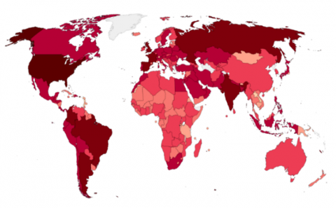 Figure 1. A heat map showcasing the distribution of COVID-19 over the worldwide [7]